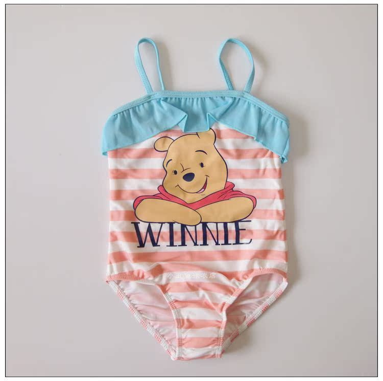 外貿原單2013迪士尼兒童游泳衣女童連體寶寶泳衣維尼熊 正品