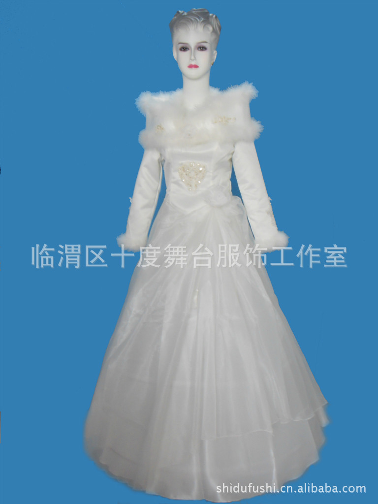 服裝名稱:十度白色冬款長袖立領(lǐng)婚紗。