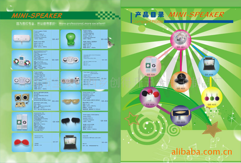 我司還生產(chǎn)IPOD音箱,PSP音箱,USB音箱等各種迷你小音箱.自2004年即進(jìn)入迷你音箱行業(yè). 目前有各種迷你音箱30多款.為諾基亞,摩托羅位,沃爾瑪供貨商.出口市場(chǎng)以歐美為主.