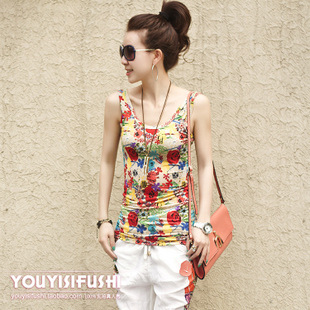 印花圖案很讓人驚艷,大手筆色彩的運用顯得張揚而不落俗,大片的花朵圖案不同的顏色搭配,讓人感受到清純無比,熱情洋溢,背心很修身,整個衣身的線條很流暢,YY屬于中長款,而且有很好的彈性,所以,無論什么身材的MM都能穿哦,而且。料料還很舒服哦,很透氣!
