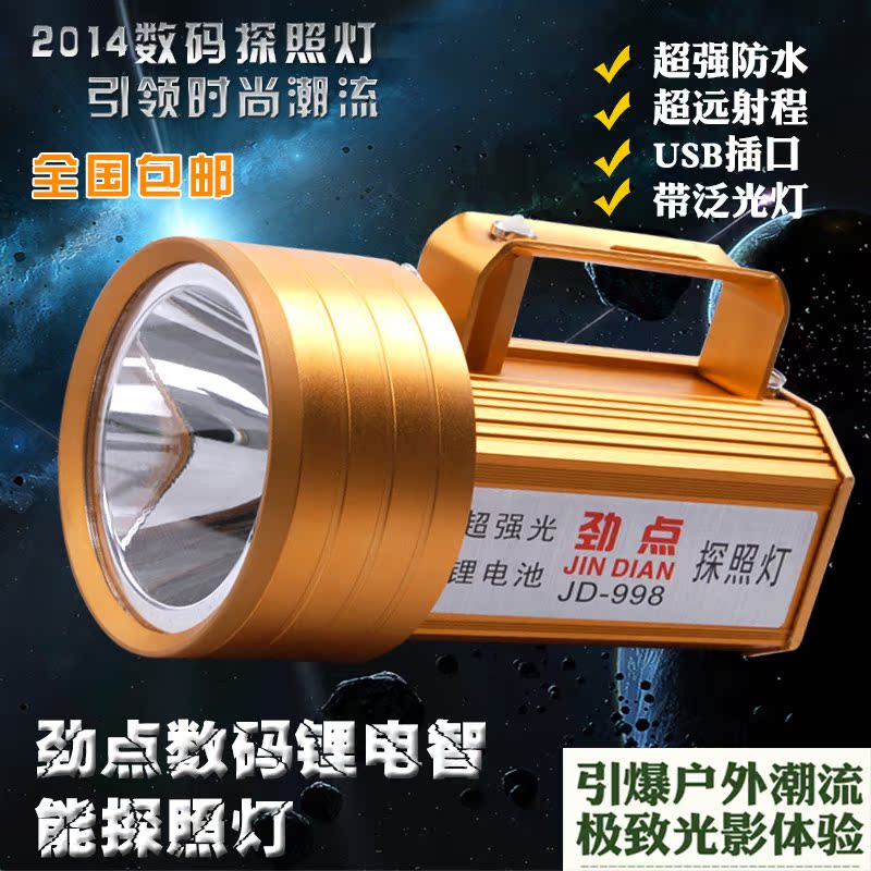 勁點-998強光手電遠程手提探照燈家用戶外LED手電筒遠射充電鋰電