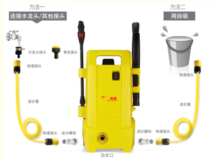 該款機器定位是家用高壓洗車機,1700W超大功率,水壓強勁,洗車超快;該款機器采用220V全銅電機加自吸組件,經久耐用;獨特關槍停機功能,節能環保;自吸兩用,快插連接,方便快捷;如果是家用清洗、洗車、洗地、洗墻、洗浴室、沖洗青苔等等可直接下單,絕不會讓您失望的。(注意:由于機器壓力比較大,請勿將槍口直接對人噴射)