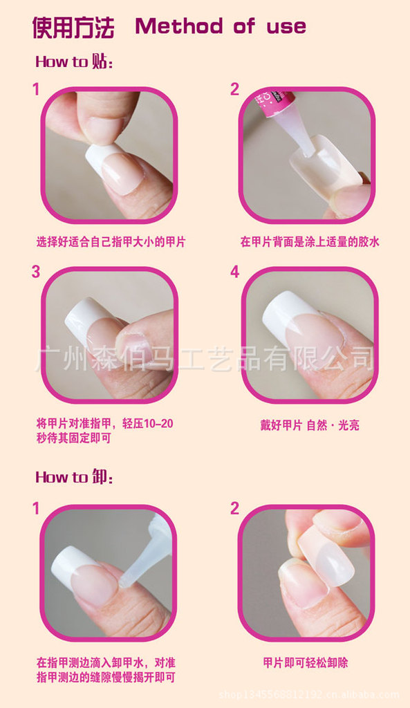 1.每盒都配備進口環保專業美甲膠水,不傷指甲,粘性好,就算天天做家務,也一樣可以10天不掉。