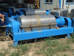 臥螺離心機是一種臥式螺旋卸料、連續操作的沉降設備。本類離心機工作原理為:轉鼓與螺旋以一定差速同向高速旋轉,物料由進料管連續引入輸料螺旋內筒,加速后進入轉鼓,在離心力場作用下,較重的固相物沉積在轉鼓壁上形成沉渣層。輸料螺旋將沉積的固相物連續不斷地推至轉鼓錐端,經排渣口排出機外。較輕的液相物則形成內層液環,由轉鼓大端溢流口連續溢出轉鼓,經排液口排出機外。本機能在全速運轉下,連續進料、分離、洗滌和卸料。具有結構緊湊、連續操作、運轉平穩、適應性強、生產能力大、維修方便等特點。適合分離含固相物粒度大于0.005mm,濃度范圍為2-40%的懸浮液。廣泛用于化工、輕工、制藥、食品、環保等行業。