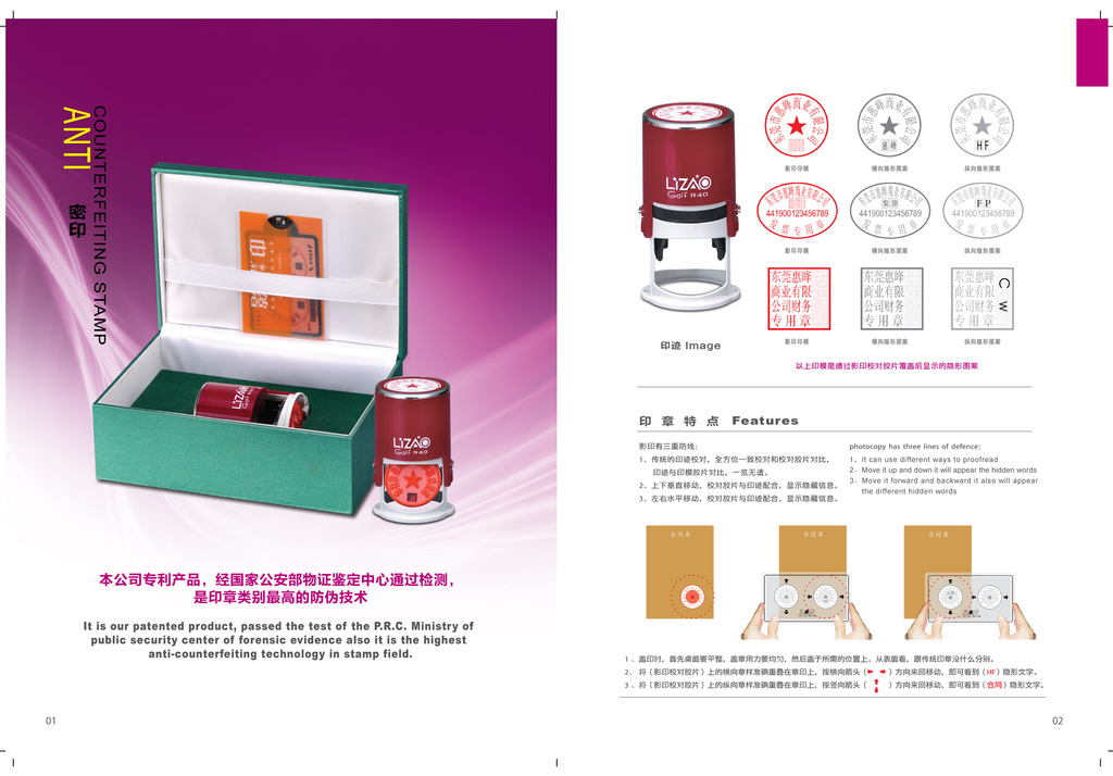 產品特點:設計新穎美觀,采用ABS工程塑料制造,其日期調整簡潔方便,自帶印臺,清潔方便;全尺寸印面視窗清楚呈現實際印跡,用者可輕松挑選所需印章;握把兩側的固定鎖鈕設計及固定止滑墊,可在操作時提供止滑作用讓蓋印動作更確實,并蓋出清晰的印跡,讓您的工作更完美。