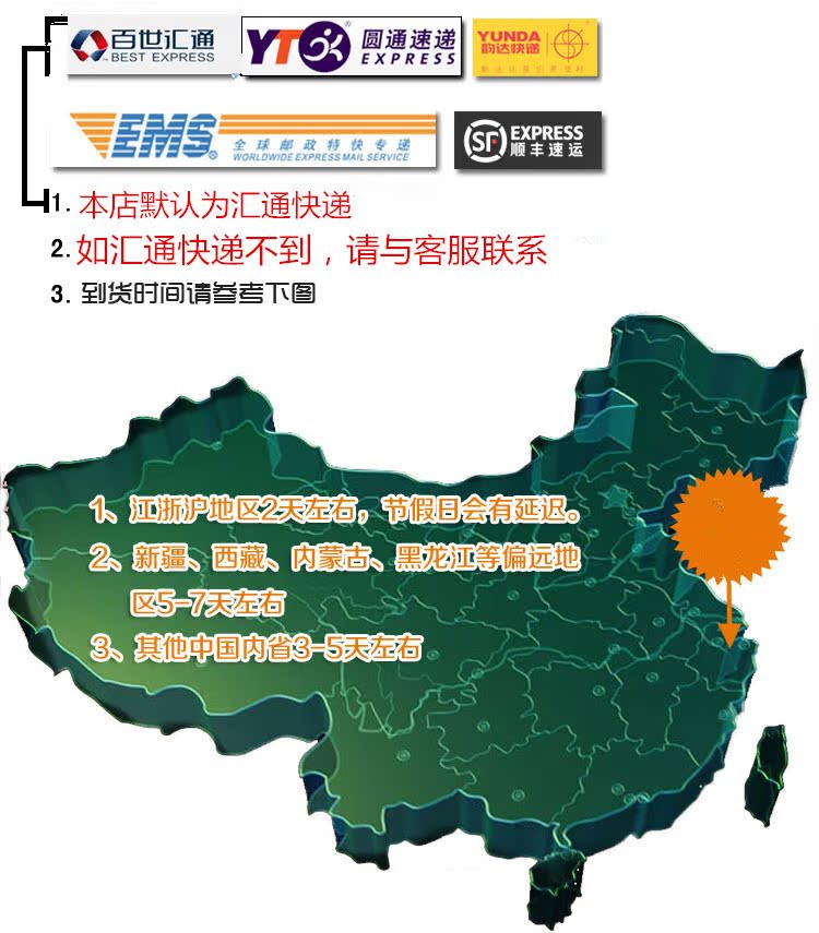 本店默認(rèn)為匯通快遞,如果不能到達(dá),請(qǐng)聯(lián)系客服更換為其他快遞