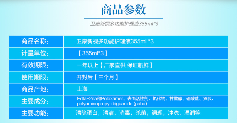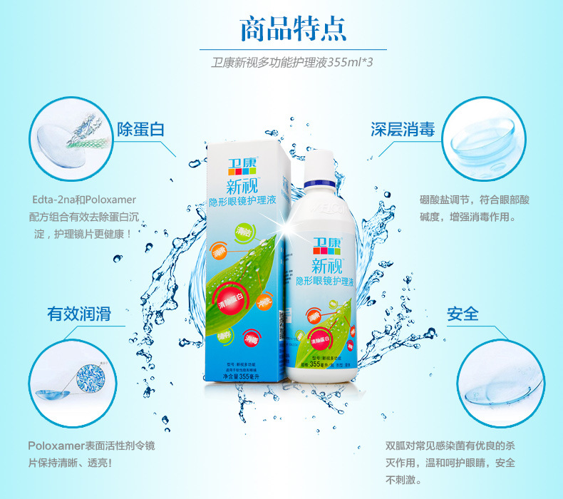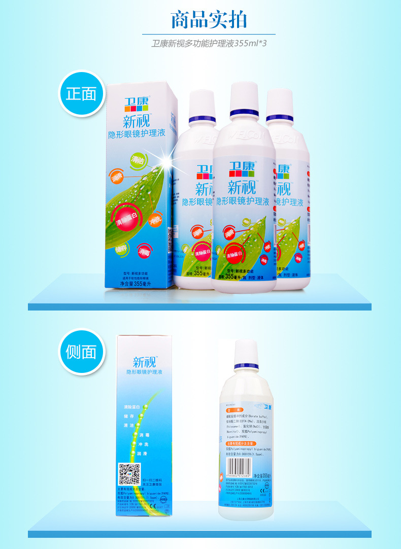 衛康新視近視隱形眼鏡盒美瞳護理液免搓洗除蛋白型355ml*3