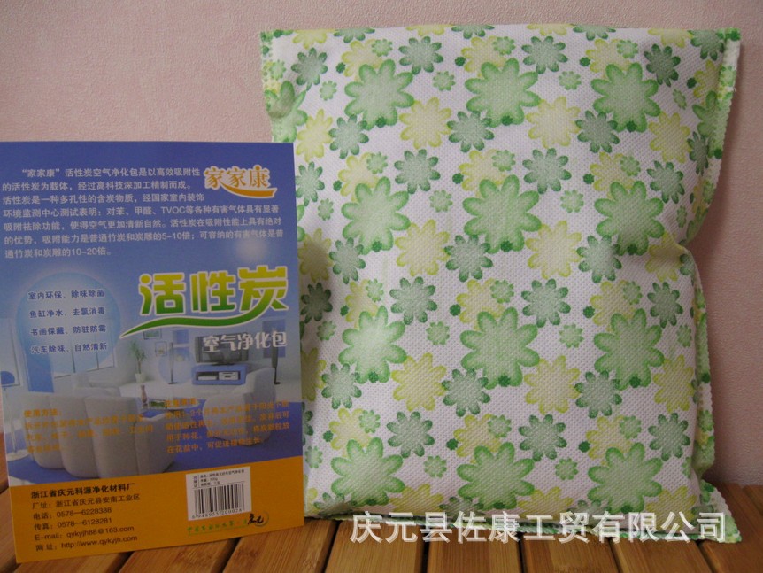 1、從OPP包裝袋中取出活性炭包,擺放在家具的抽屜、柜子內,居室、衛生間、鞋柜里即可,不用打開布袋,本產品綠色環保,無污染,請放心使用。