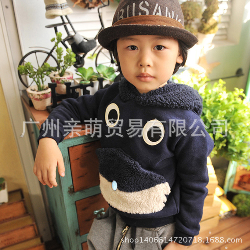 2014秋冬新款兒童連帽抓絨童衛衣 韓版外貿童裝外套批發