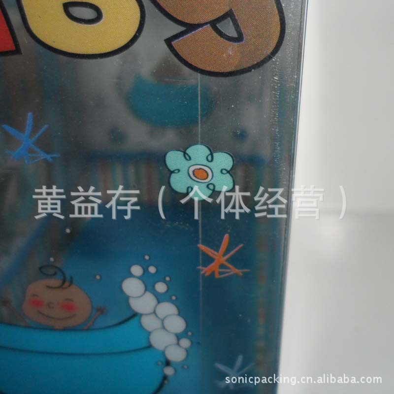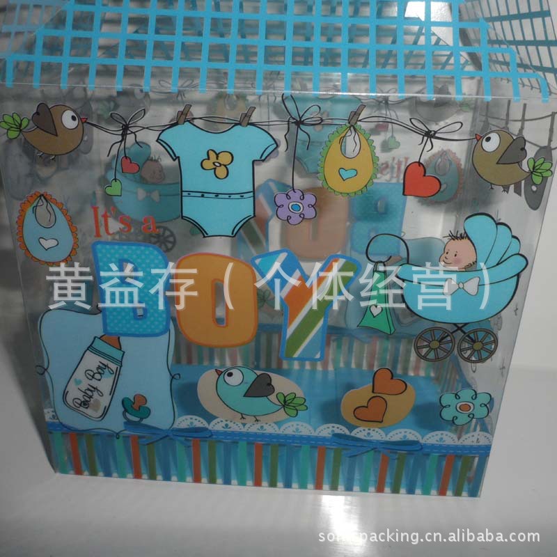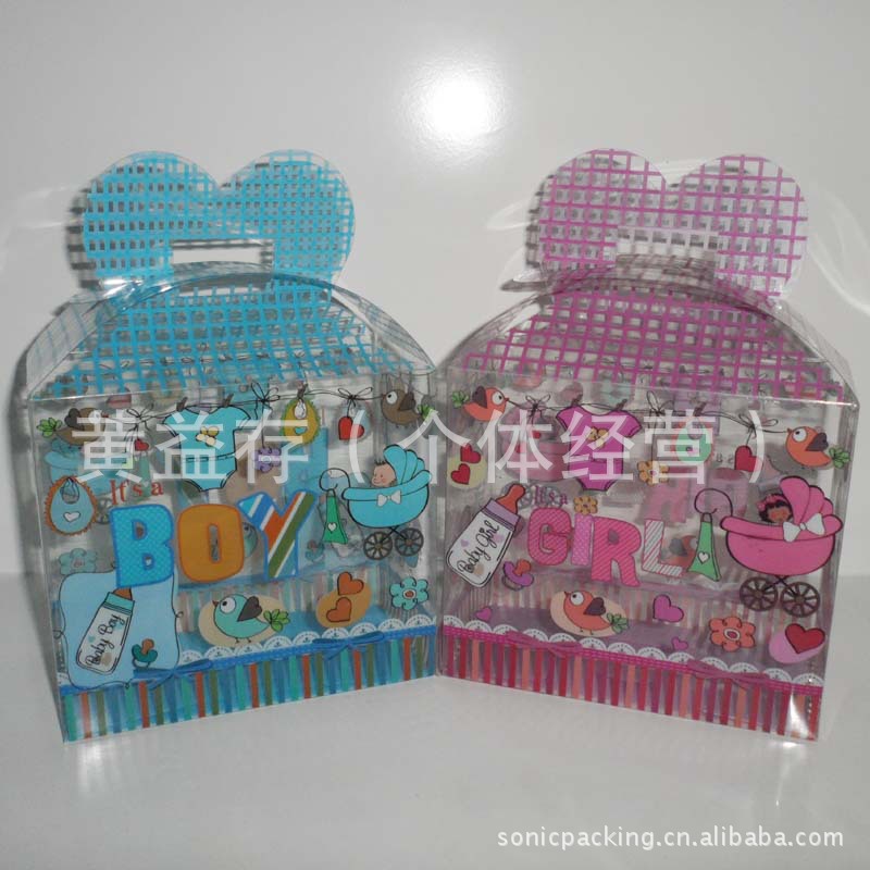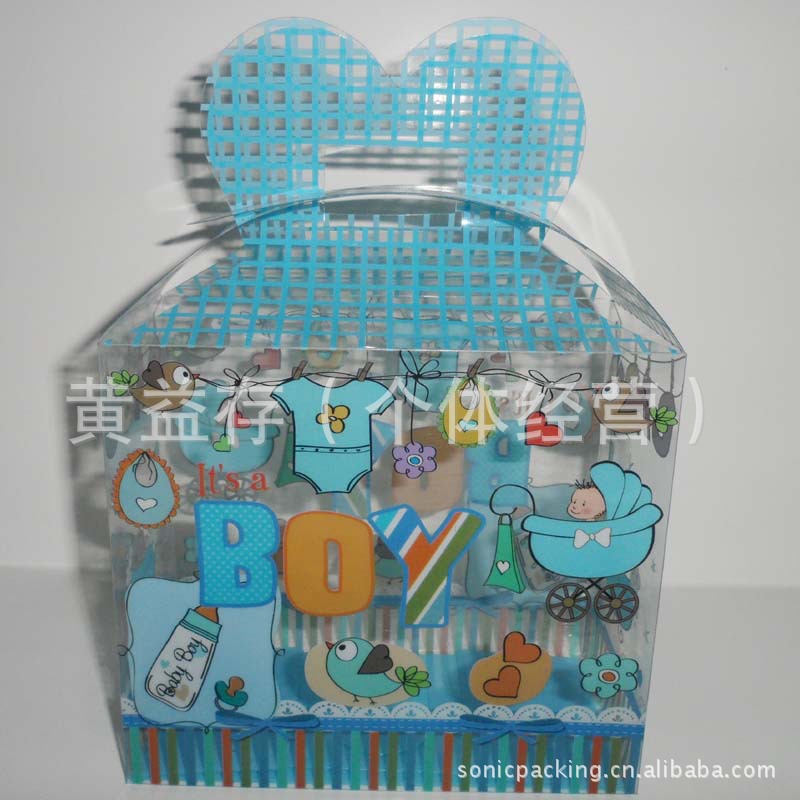 【產(chǎn)品描述】:整個(gè)包裝盒可愛(ài)童趣,采用優(yōu)質(zhì)透明PVC材料,多色印刷;盒子正背面印有各式幼兒兒童用品圖案,底部帶花式盒扣;使用的材料厚度是0.21MM,軟硬度適中;有藍(lán)色、紫色可選;整體而言,是一款小巧精致的禮品包裝盒。