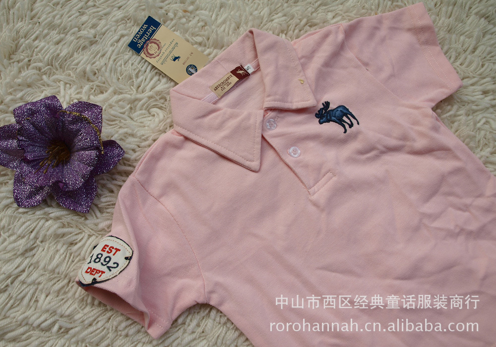 外貿(mào)出口單 品牌衫短袖T恤 翻領(lǐng)T恤 3-8歲男童中童珠地純棉衫