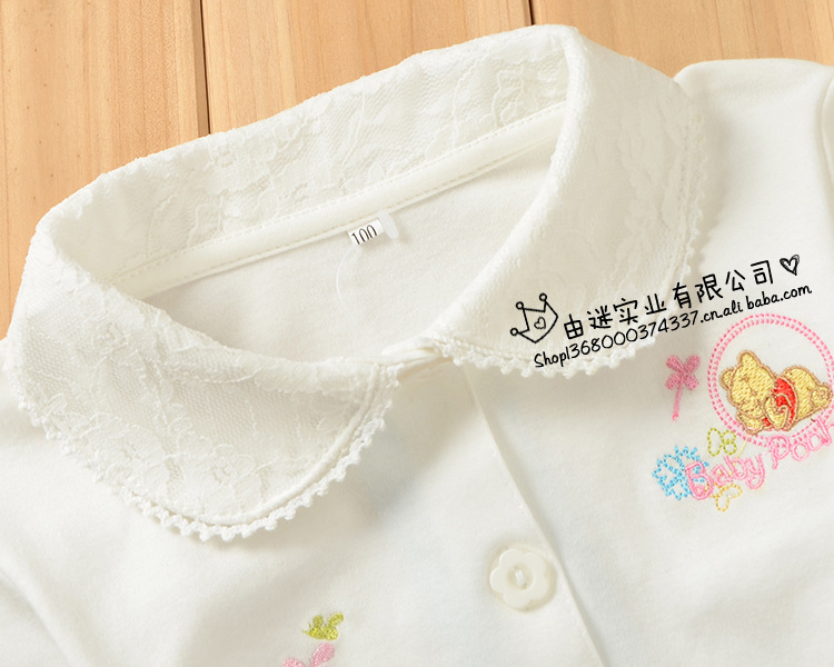 漂亮小公主襯衣,領上精美的繡花和蕾絲花邊,針織棉面料,手感好,適合春秋季節穿著,很百搭的一款襯衣,單穿、配背帶裙或配背帶褲都非常漂亮的,小公主必備單品...