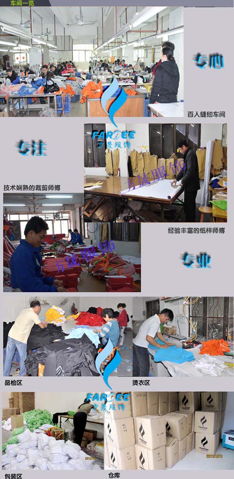 中山方晟服飾專心、專注于廣告服飾設計與定制。經多年對品質的要求,常年與知名品牌美的、樂百氏、雷柏、康佳、金立、華擎、三菱重工、東鵬、銀行、郵政等企事業單位合作,也是很多淘寶店的優質供應商。