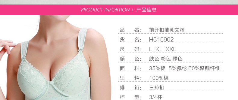 4、 3D模杯,不壓迫媽咪乳腺,內里能放置防溢乳墊 記憶鋼圈,彈性 好,不變形,防止胸部下垂!
