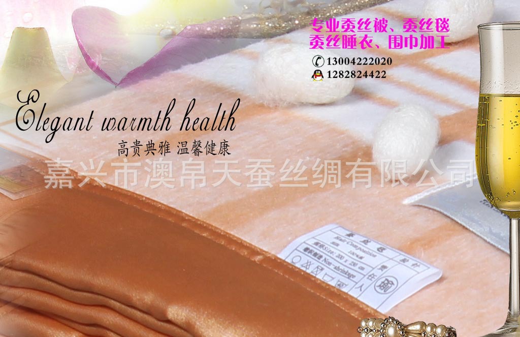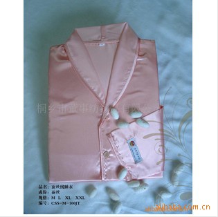 嘉興——中國絲綢之府,位于杭嘉湖三地交界處,以其獨特的氣候和地理壞境,培育出了優(yōu)質(zhì)的桑蠶繭。人們用世代相傳的手工藝結(jié)合現(xiàn)代高科技工藝,制成了各種天然蠶絲制品,它的“舒、暖、柔、輕、寧”正成為當今家居的傳世珍品。蠶絲絨睡衣,面料選用輕薄優(yōu)質(zhì)的桑蠶絲經(jīng)多種工藝處理,手感柔軟,突出都市人性化特征。睡衣的特點是居家任何場合都可穿著,同時飄逸的感覺給女性平添一份嫵媚;給男人一份自信。產(chǎn)品藝術(shù)性強,做工考究,它的每款設計都傳播著古典華貴的文化。