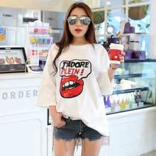 2015韓國東大門夏季新款韓版時尚嘴唇亮片字母印花純棉短袖T恤女銷量4800