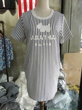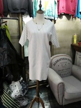 2015夏裝新款韓版寬松大碼豎條紋休閑打底裙短袖口袋長款打底T恤銷量2332