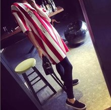 2015春夏新款韓國東大門代購紅白條紋長款純棉T恤衛衣連衣裙大碼銷量3623