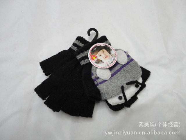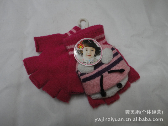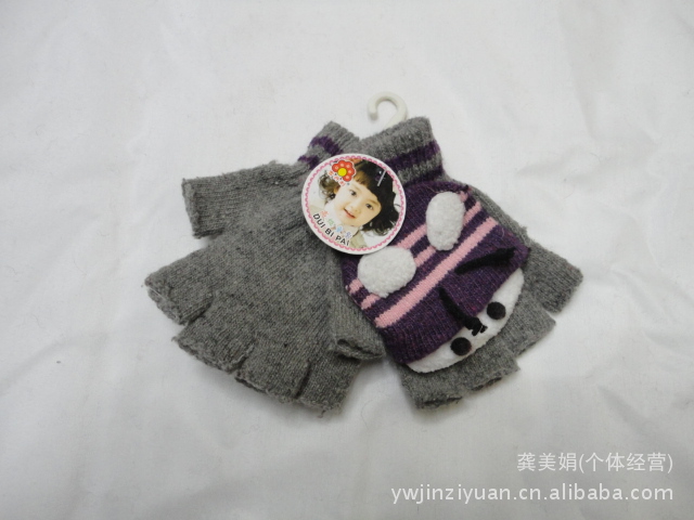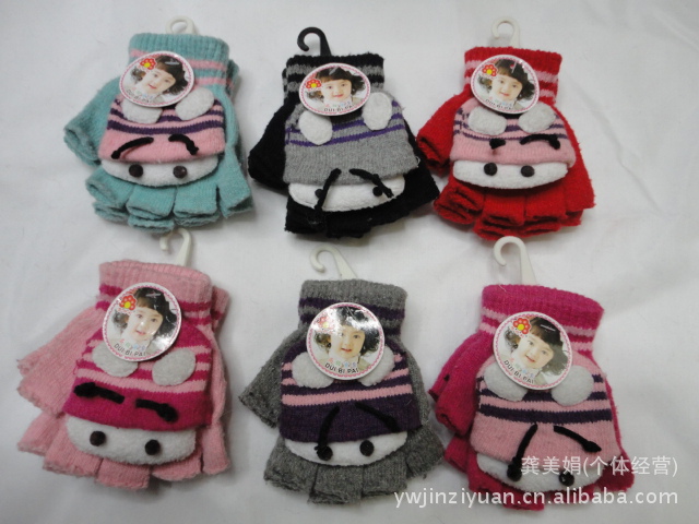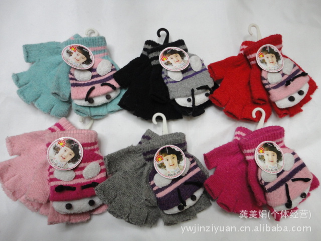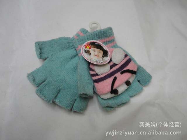 韓版時尚羊毛提花小孩半指翻蓋手套 針織手套 魔術手套