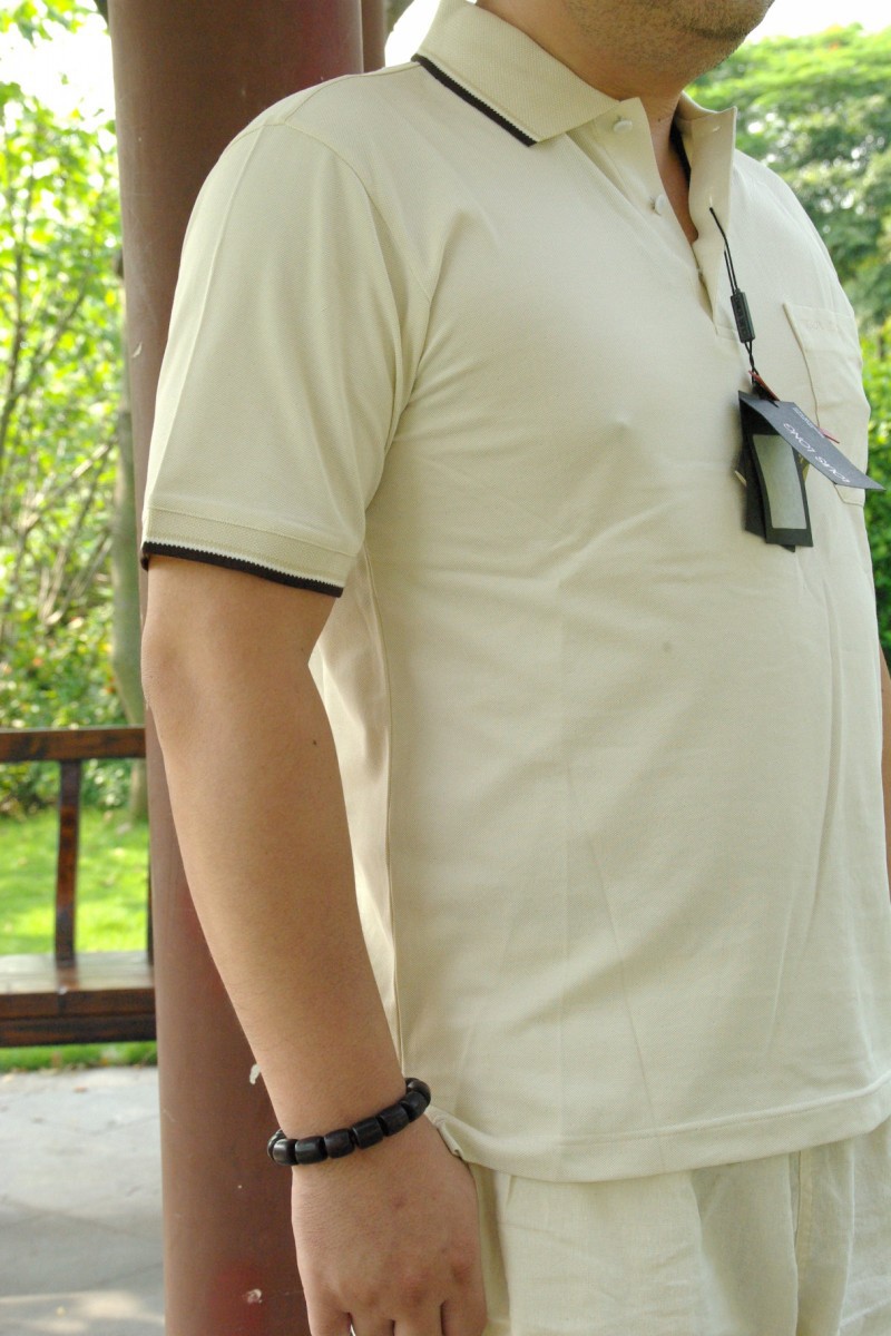正品路易詩蘭LOUIS LONG男裝短袖T恤淺米黃男T短袖