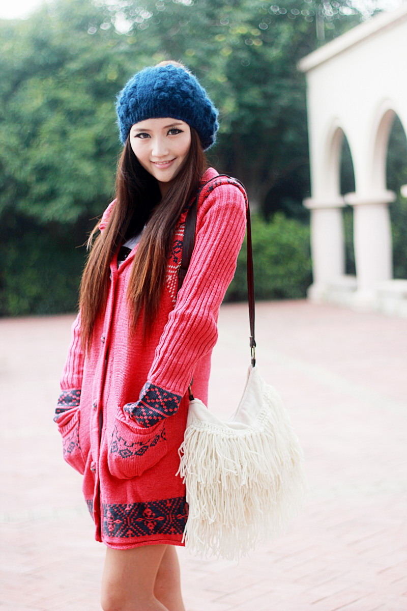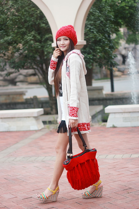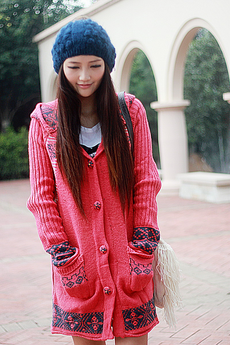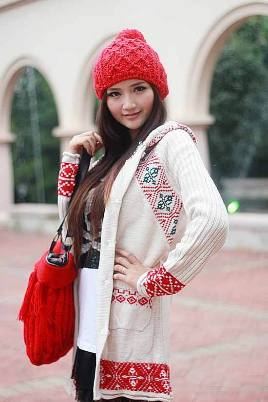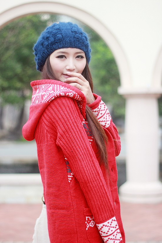 以白色為主色調看起來比較清新,再配以紅色的伊斯蘭風格的花紋,清新中顯出高雅的氣質。后面的小帽帽給人舒適安寧的感覺,俏皮的紐扣仿佛點點繁星點綴在潔白的大地上。整體長版的設計使身材顯的更加的修長簡約中透著可愛。衣袖采用了豎線條的紋路,使得手臂在視覺上有拉長和顯瘦的效果哦。值得一提的是,此款YY袖子還可以當手套使用的。細節圖稍后補上!