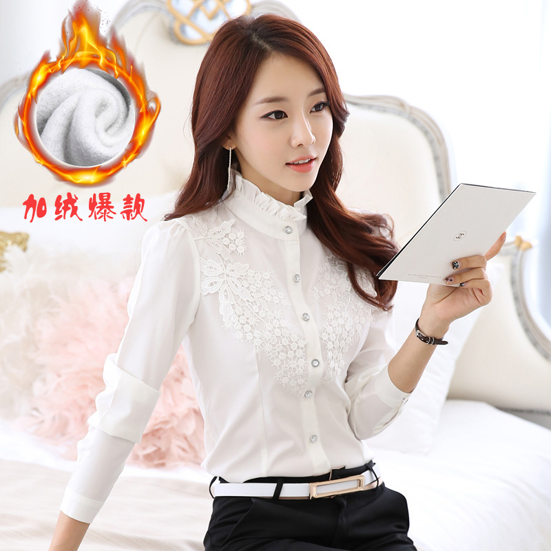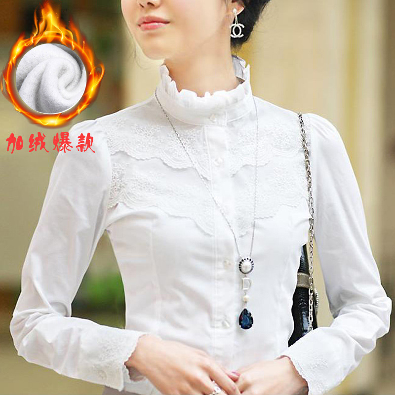 加絨加厚保暖襯衫女韓范 秋冬蕾絲打底 高級小立領女長袖免費加盟¥55立即搶購