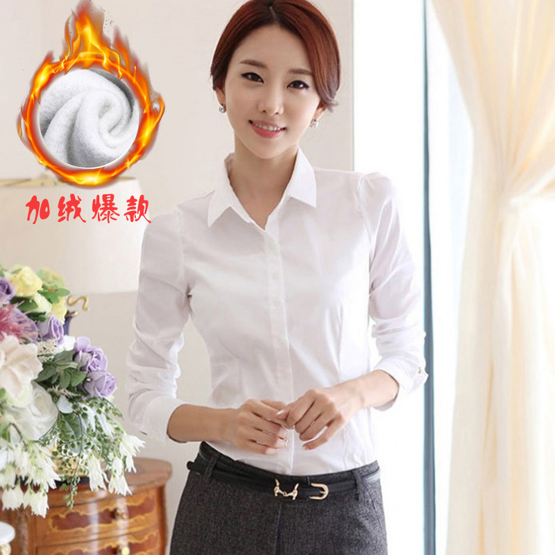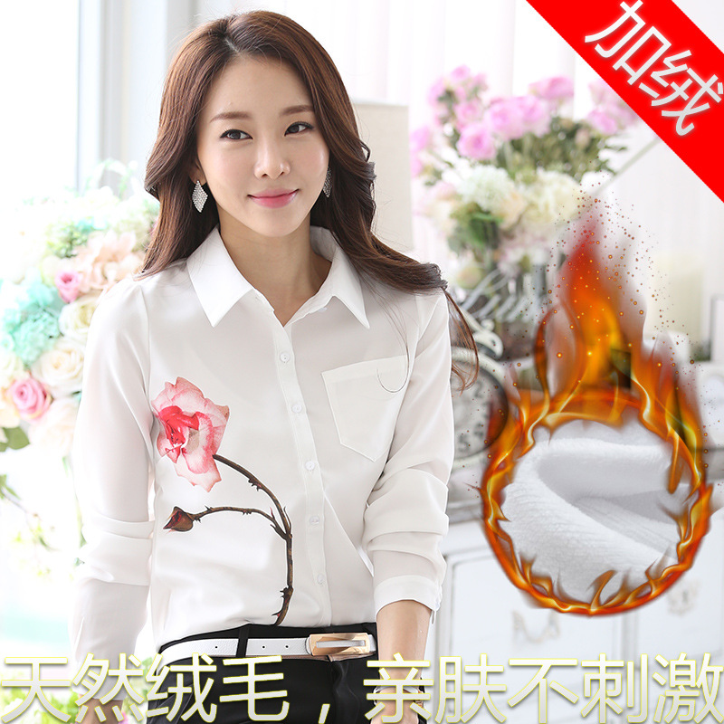 2015年高端韓版上衣女裝打底衫 襯衣大碼白加絨加厚長袖女襯衫¥59立即搶購