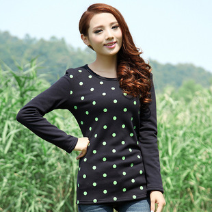 特價廠家直銷秋冬加厚不倒絨加長圓點印花女衛衣保暖衣新款 促銷39.0 ¥39.0熱銷0