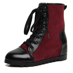 溫州女鞋廠家 新款內(nèi)增高平底真皮女靴 韓版拼色短靴 馬丁靴女鞋