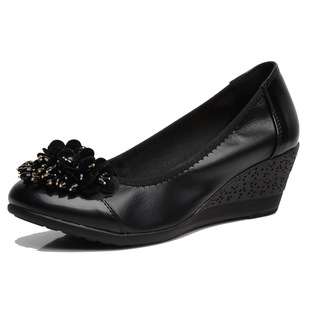 2013新款金屬裝飾中老年深口女單鞋 媽媽工作休閑真皮坡跟高跟鞋