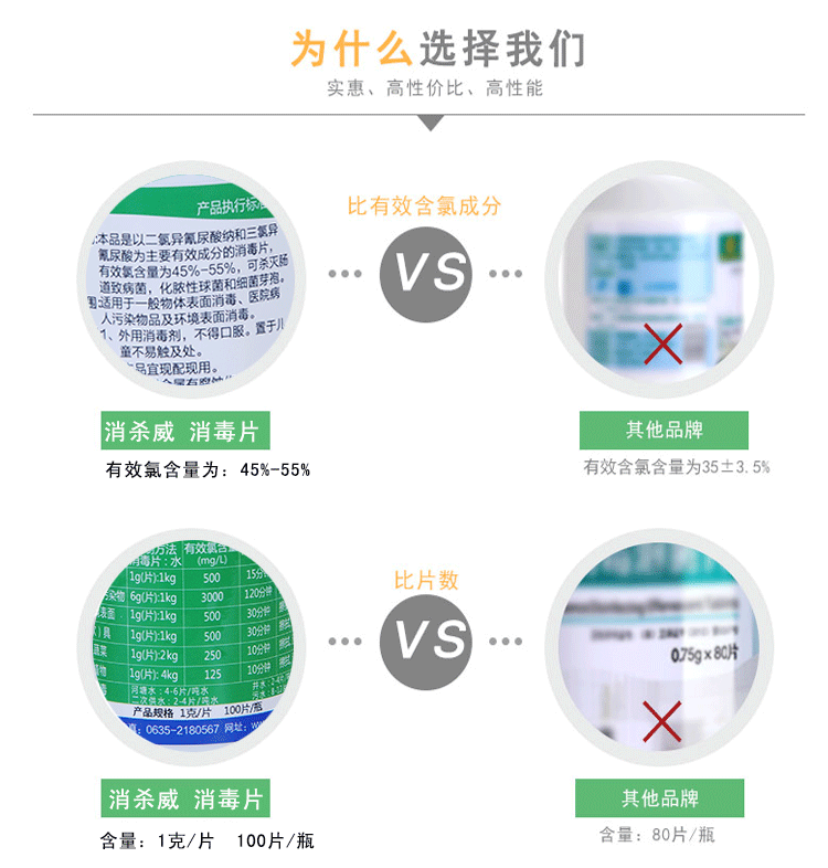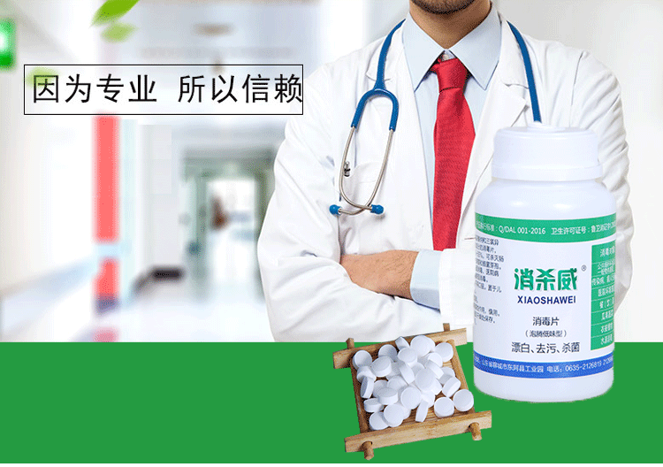 本品是以三氯異氰尿酸和二氯異氰尿酸鈉為主要成分的消毒片,有效氯含量為45%-55%。