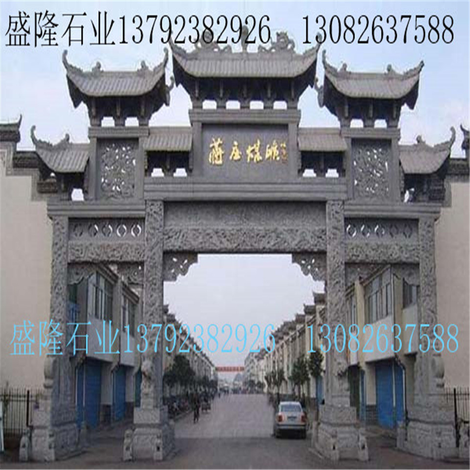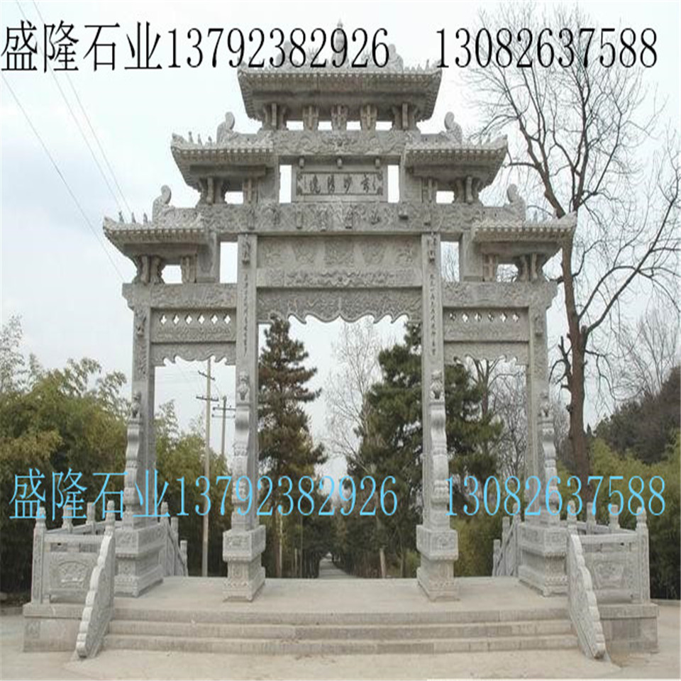石雕牌坊是指用石頭修建的牌坊,是一種裝飾建筑物。常見于古代陵園。如北京明代陵墓外面的大紅門前,有石牌坊一座。整個牌坊為五間六柱十一樓,結(jié)構(gòu)勻稱和諧,造型美觀大方。牌坊用純一色的漢白玉雕制而成。柱石的上方刻有麒麟、獅子,夾柱石的浮雕有雙獅戲彩珠,牌坊上還雕刻著其他怪獸云紋。是我國建筑藝術(shù)的一大特色。 此牌坊是全石仿木結(jié)構(gòu),亭閣式斗拱建筑,飛檐翅角,三門四柱。高6.80米,寬6.3米。明天啟年間,因土王覃鼎征戰(zhàn)有功,朝廷賜建牌坊一座。整座牌坊上刻有“荊南雄鎮(zhèn)”,反面刻有“楚蜀屏翰”。整座牌坊上刻有“土王巡游”、“漁樵耕讀”、“云吞雨霧”、“哪吒鬧海”、“槐蔭送子”等浮雕圖案。正面兩角有浮雕象鼻對峙。兩側(cè)基石柱各有撐鼓,石柱兩側(cè)配有石獅。牌坊于案運用浮雕、透雕等手法。