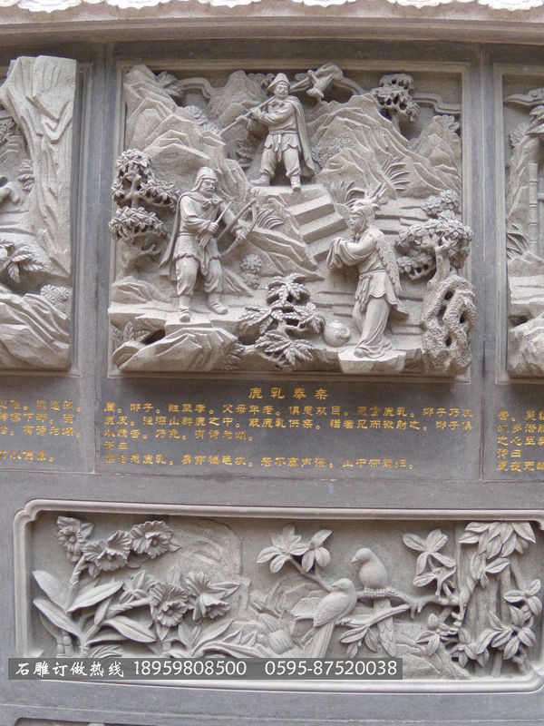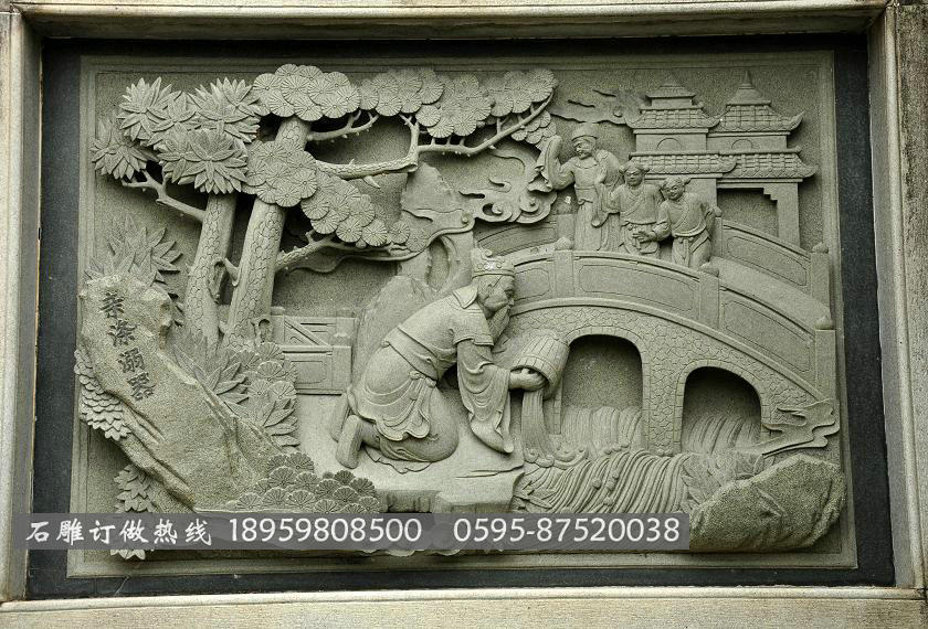 浮雕是雕刻的一種,雕刻者在一塊平板大將他要刻畫的形象雕刻出來,使它脫離本來材料的平面。浮雕是雕塑與繪畫結合的產品,用緊縮的方法來處理目標,因素來表現三維空間,并只供一面或雙面觀看。浮雕一般是從屬在另一平面上的,因此在修建上運用更多,用具器物上也常常能夠看到。由于其緊縮的特性,所占空間較小,所以適用于多種環境的裝飾。近年來,它在城市美化環境中占了越來越重要的位置。浮雕在內容、方法和質料上與圓雕一樣五光十色。浮雕常見的材料有砂巖、青石、花崗巖、大理石等等。